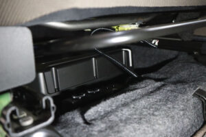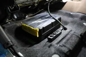 パワードウーファー「TS-WX400DA」は運転席下に設置しました。